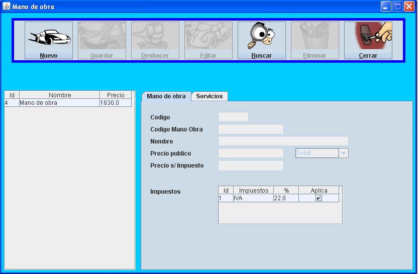 y bajas de proveedores, servicios, repuestos, empleados, marcas,