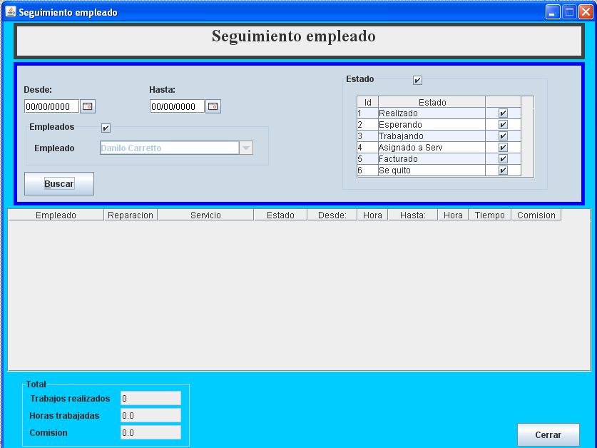 trabajos realizados por empleados, manejo de comisiones