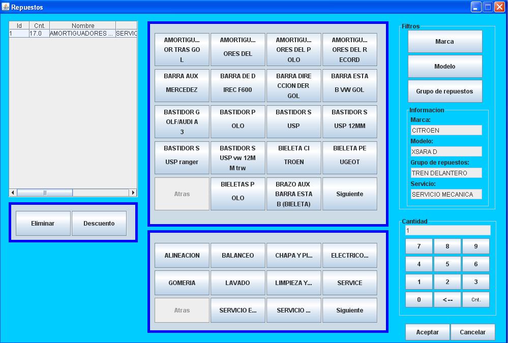 de paquetes de servicios-repuestos, permite facturación hacia