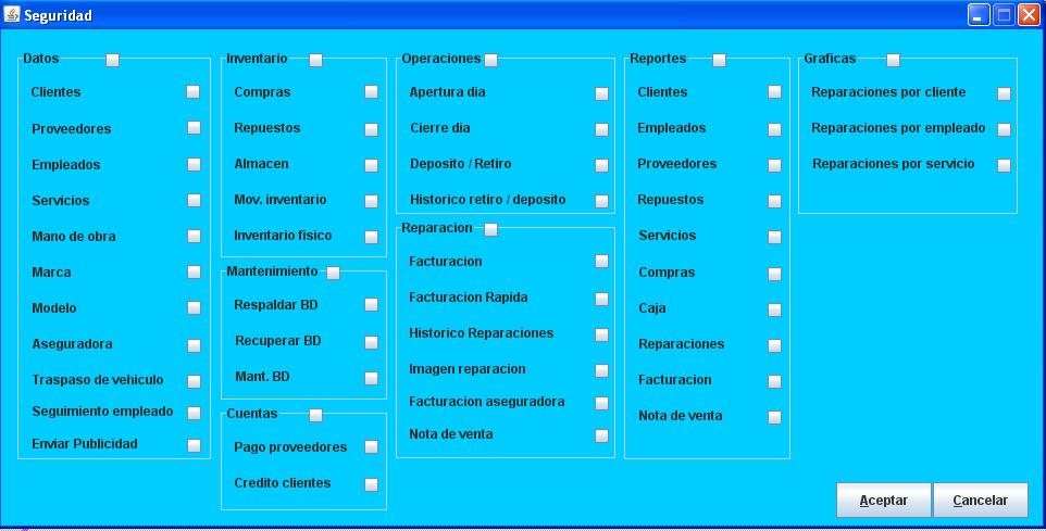 de empleado, facturación por aseguradora, nota de venta por cliente